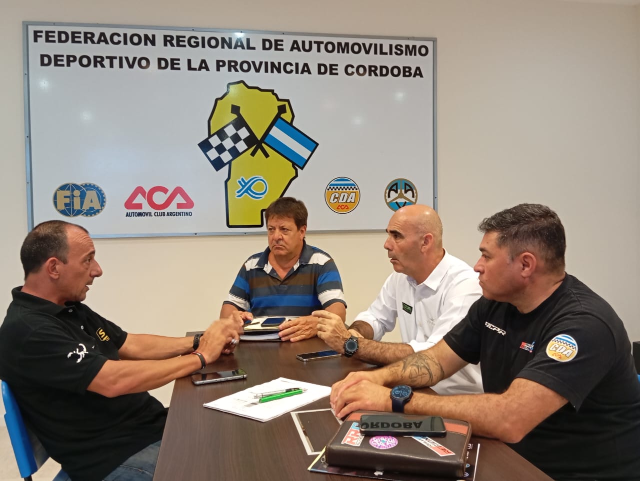 Foto: Julio Mungi (presidente de la FRAD), recibió en la sede de la entidad madre del automovilismo deportivo de la provincia a Martín Triopiano (Pirelli), Gustavo Beccaría (Rally Cordobés) y Hernán Vélez (Campeonato regional de Trepadas).